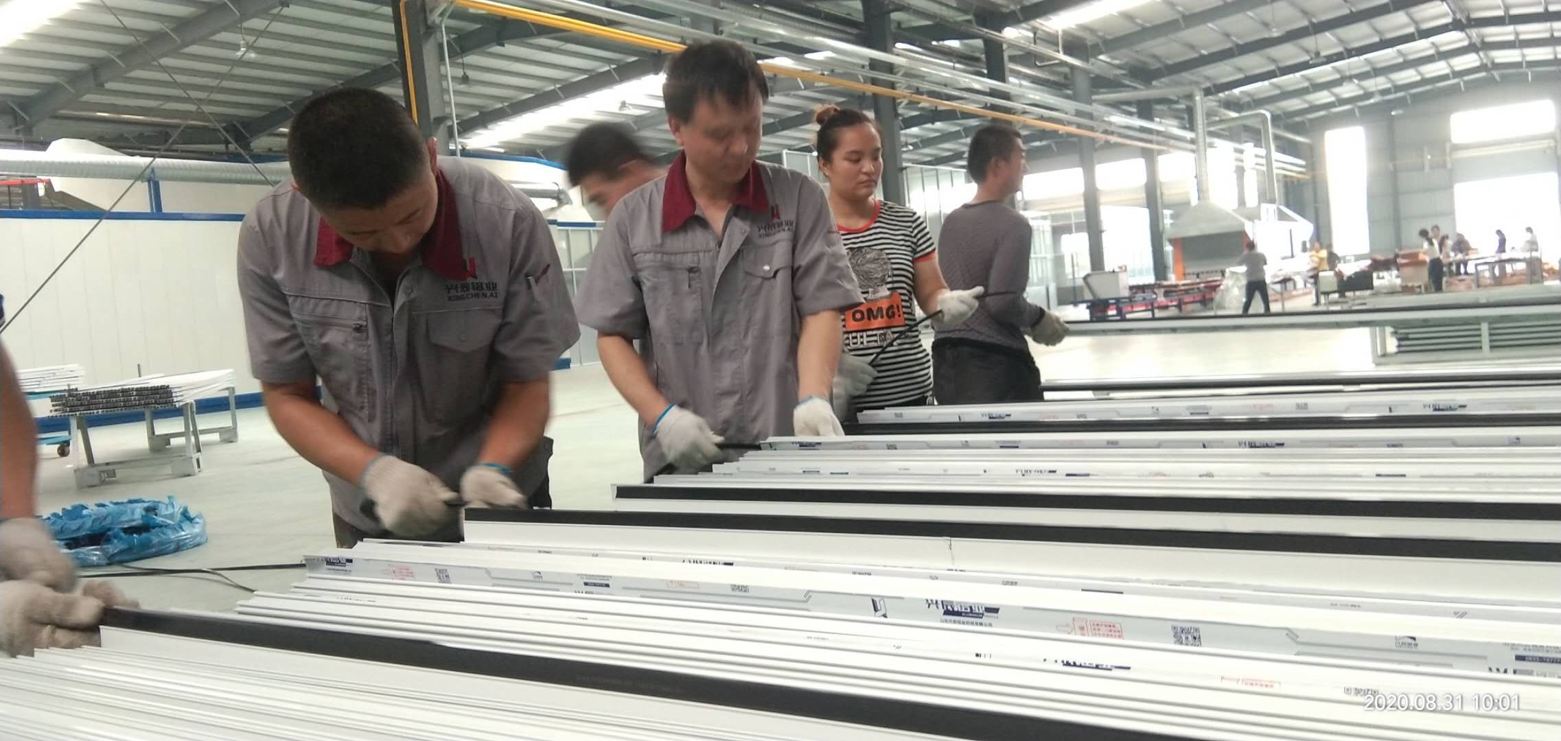 鋁型材定尺并檢查合格后,要兩人輕輕地抬著放于料框中,小心擺放整齊,不要互相碰撞和磨擦。裝框時應戴干凈的紗手套,手套絕對不能有油、水和其他臟物。裝框時,長料、重料在框下層,短料、輕料在框上層。放完一層后,根據(jù)鋁型材長度及其承受自重的程度,適當放4-8支橫隔條,再放第二層鋁型材,不允許型材垂彎及疊起堆放。凡是細料縱向不能通風的實心鋁型材,應使用帶通風孔的小方管橫隔條分層隔開,以便于時效通風傳熱。最上一層鋁型材的平面要低于料框的平面,以防疊框時壓壞型材。