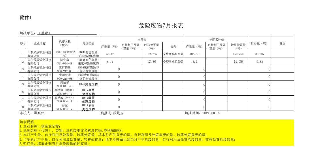 危險廢物7月報表